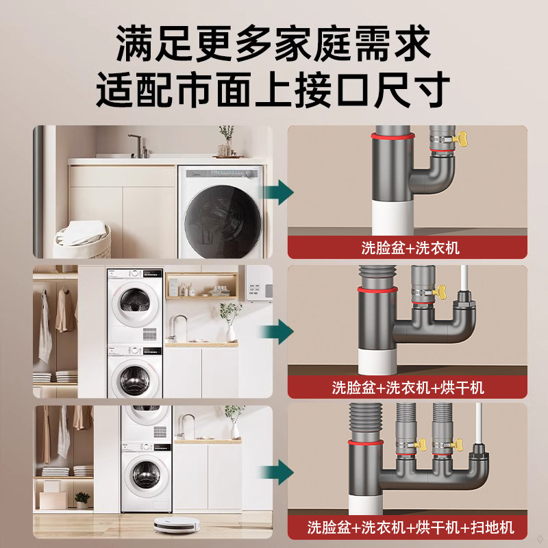 阳台洗衣机下水三通接头下水管三头通分水器烘干机排水管道四通