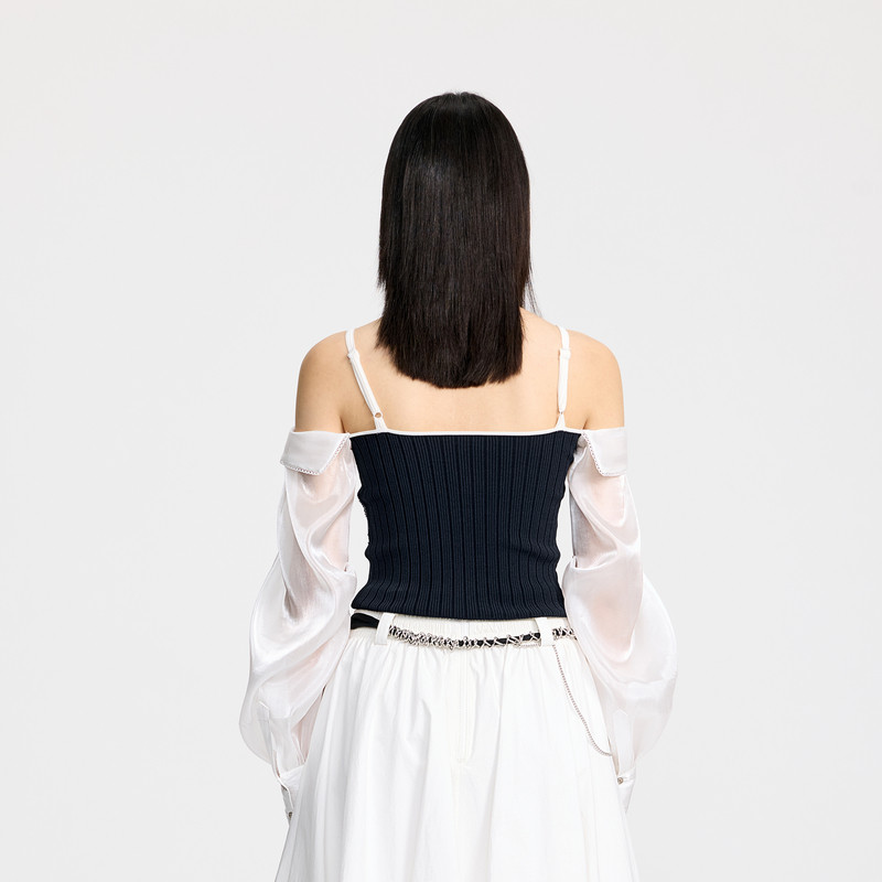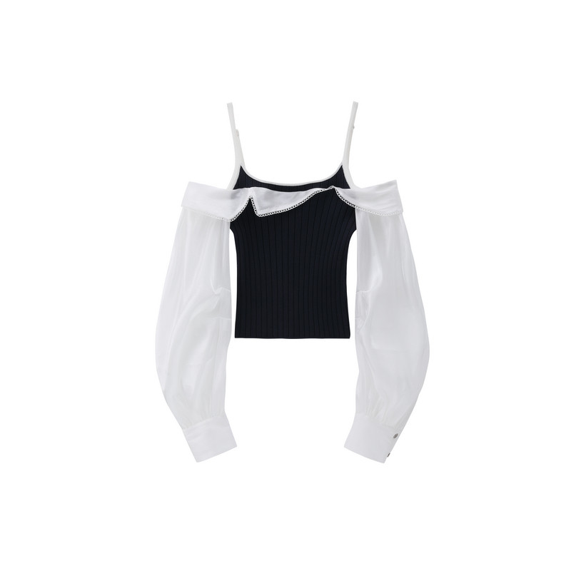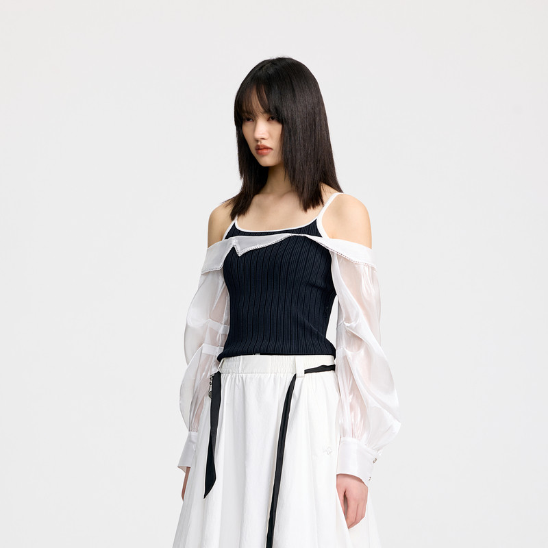 KLIOU 热辣甜酷风撞色蕾丝拼接吊带背心女显瘦高腰露脐假两件上衣