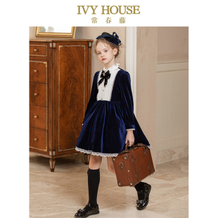 高端细腻丝绒轻奢复古宫廷礼服连衣裙 款 IVY HOUSE常春藤女童秋季