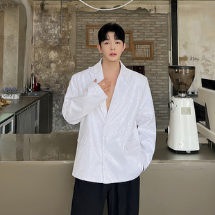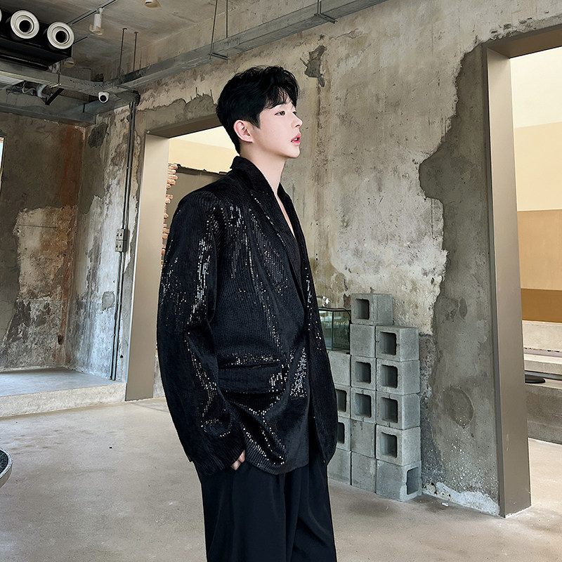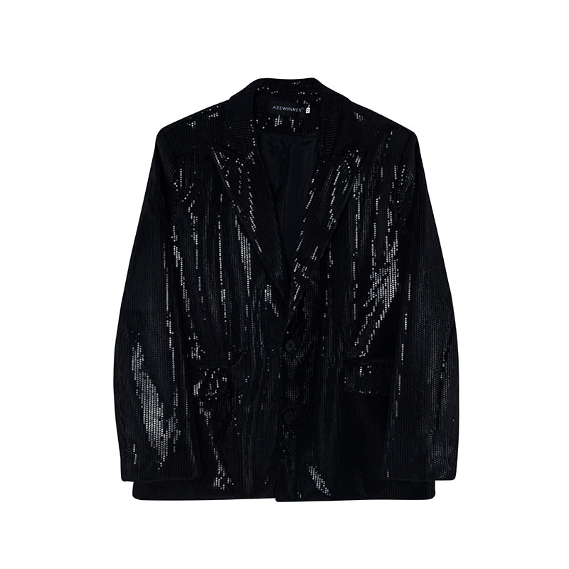 网红痞帅西服亮闪闪舞台装 高级感炸街亮片ins西装 男外套黑色韩版