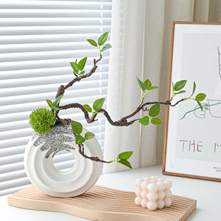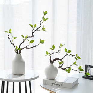 仿真梅花桃花枝摆件客厅干花盆景腊梅摆设花盆栽客厅室内装 饰假花