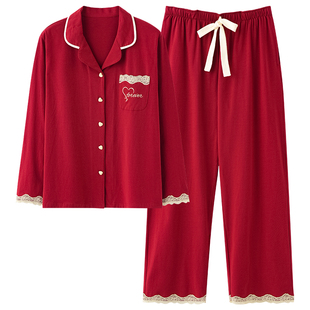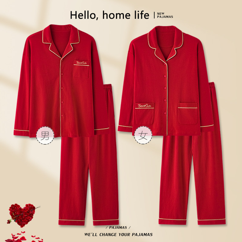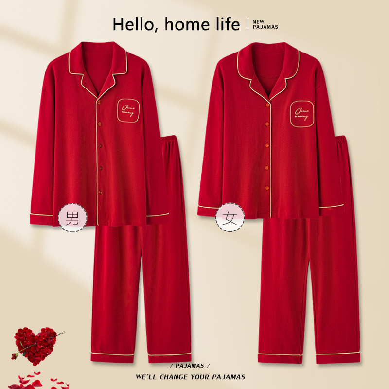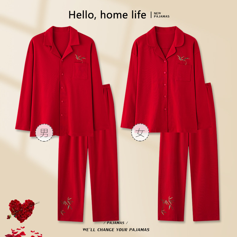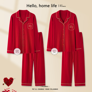 纯棉家居服男士 长袖 红色本命年 春秋款 悦内情侣睡衣女结婚新婚套装