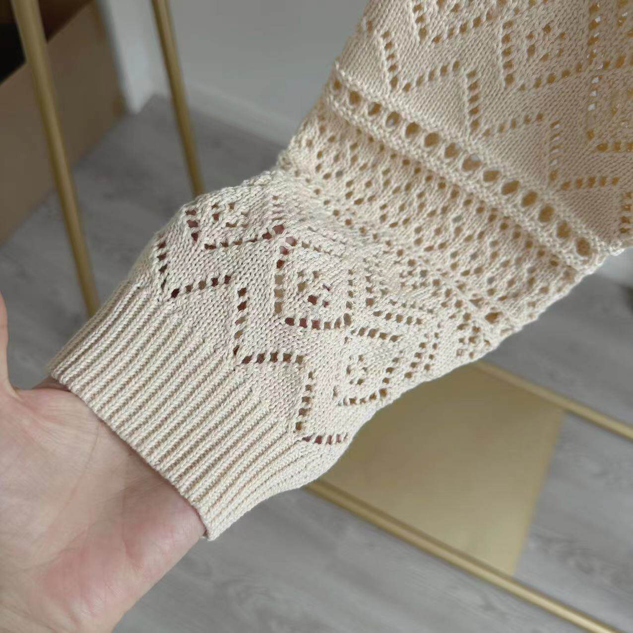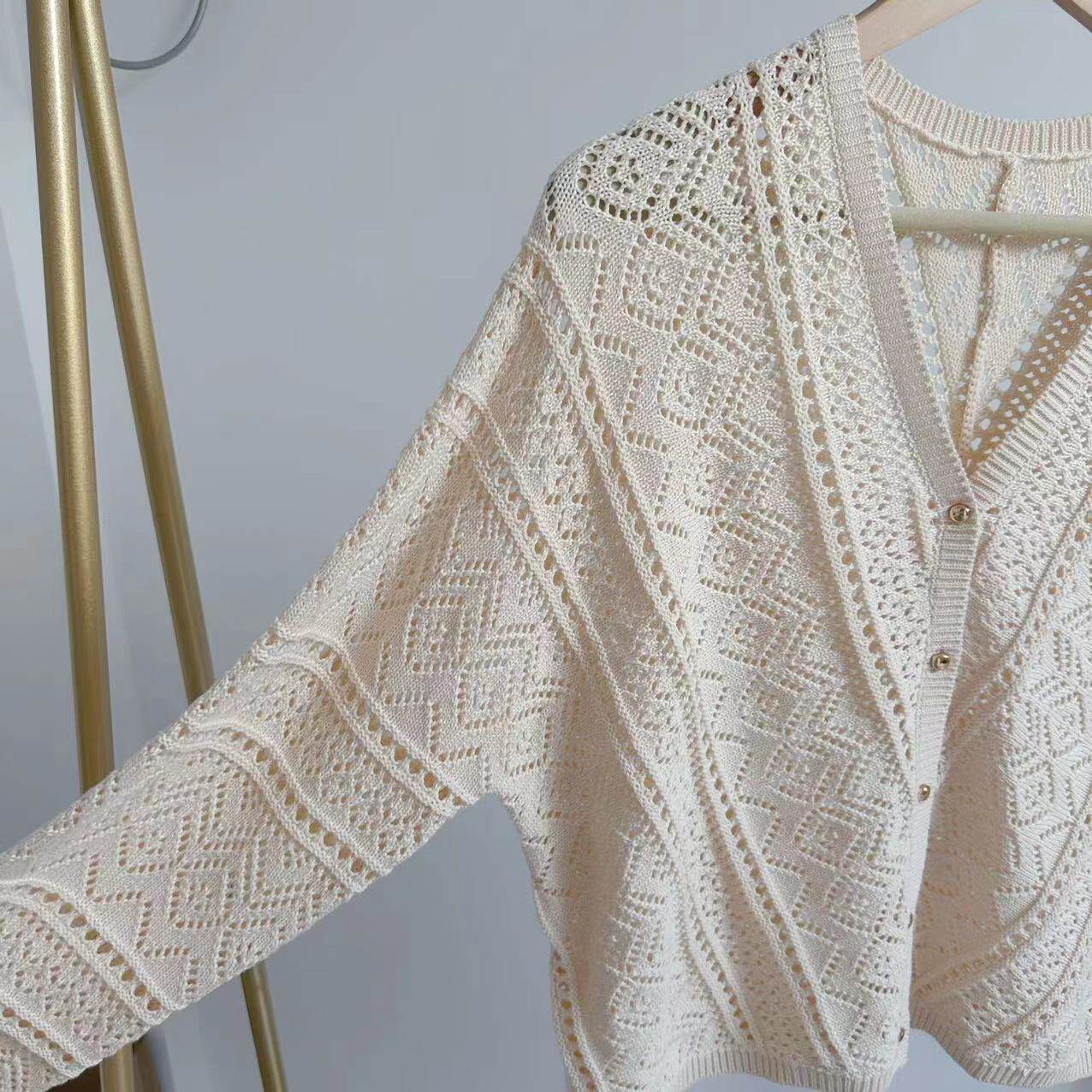毛衣短款 复古镂空针织开衫 外套女 法式 自留