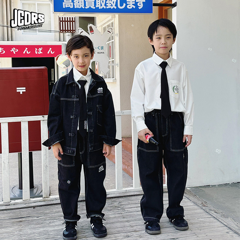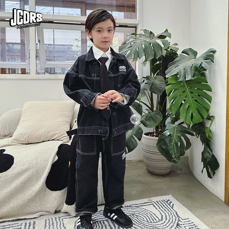 盘扣牛仔涂鸦儿童外套牛仔长裤 新中式 5折捡漏NO退换