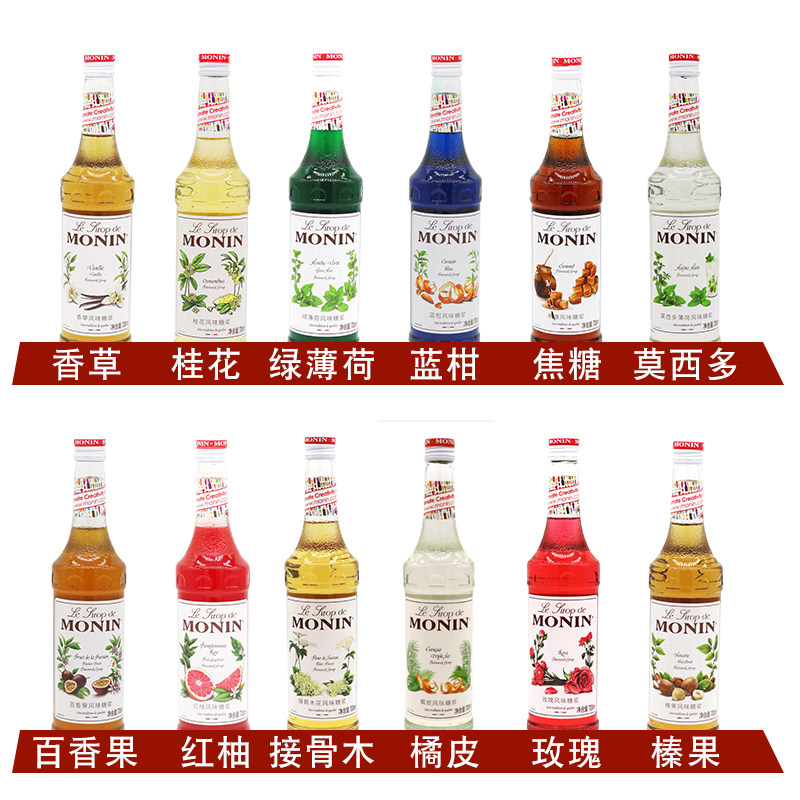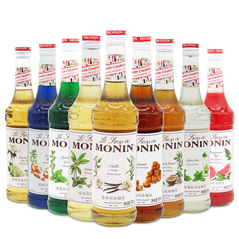 莫林MONIN纯蔗糖风味糖浆玻璃瓶700ml咖啡鸡尾酒调酒糖浆果汁饮料