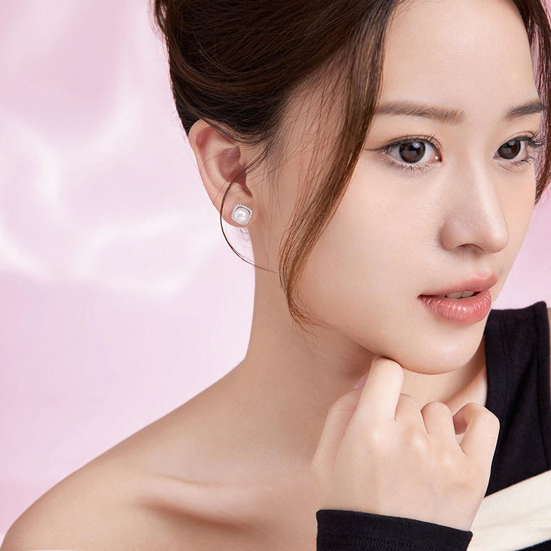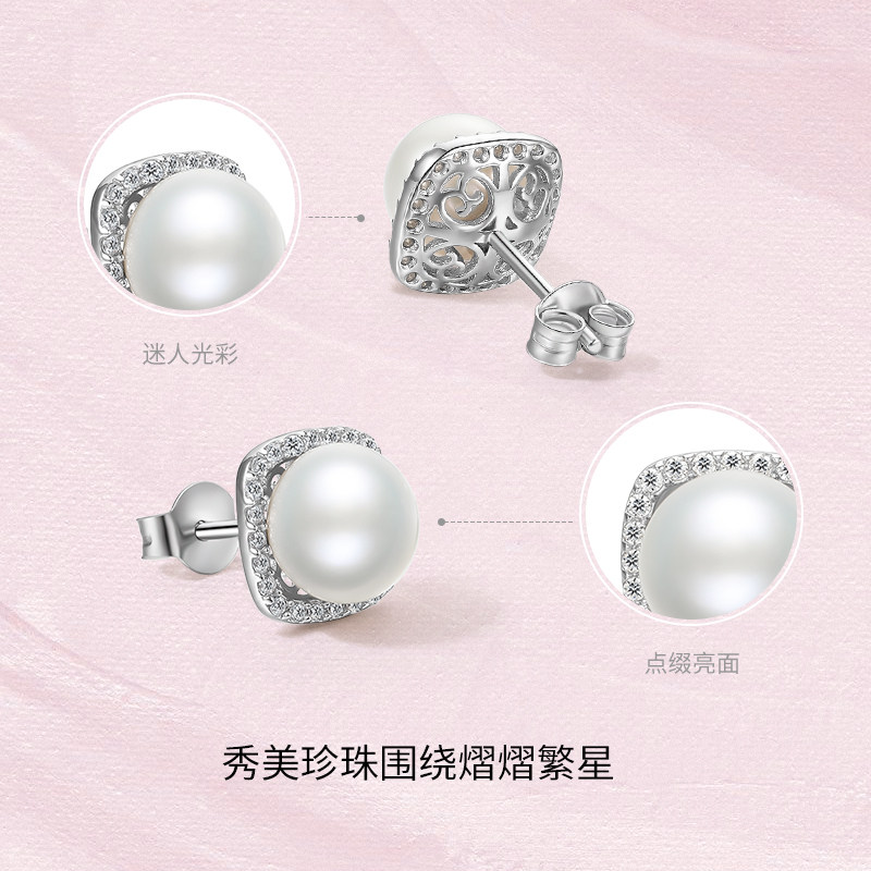 京润珍珠 倾心百搭正圆淡水耳钉天然淡水珍珠耳饰生日礼物送闺蜜D