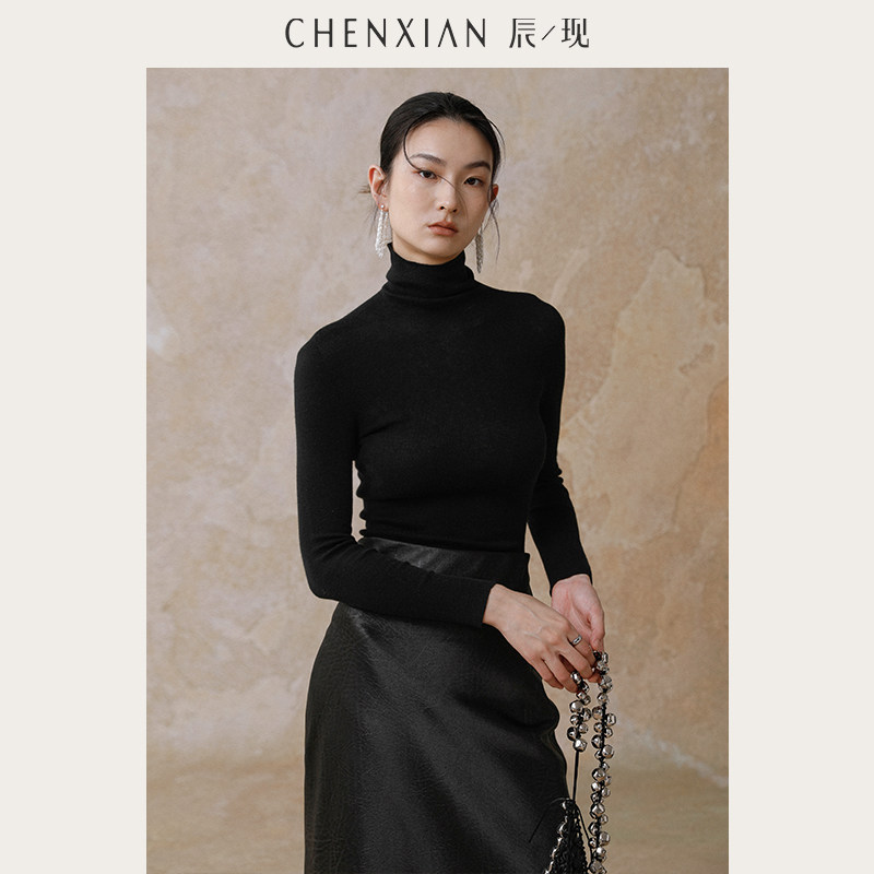 女 可机洗羊绒精纺针织一体毛衣堆堆高领套头打底衫 到手299元