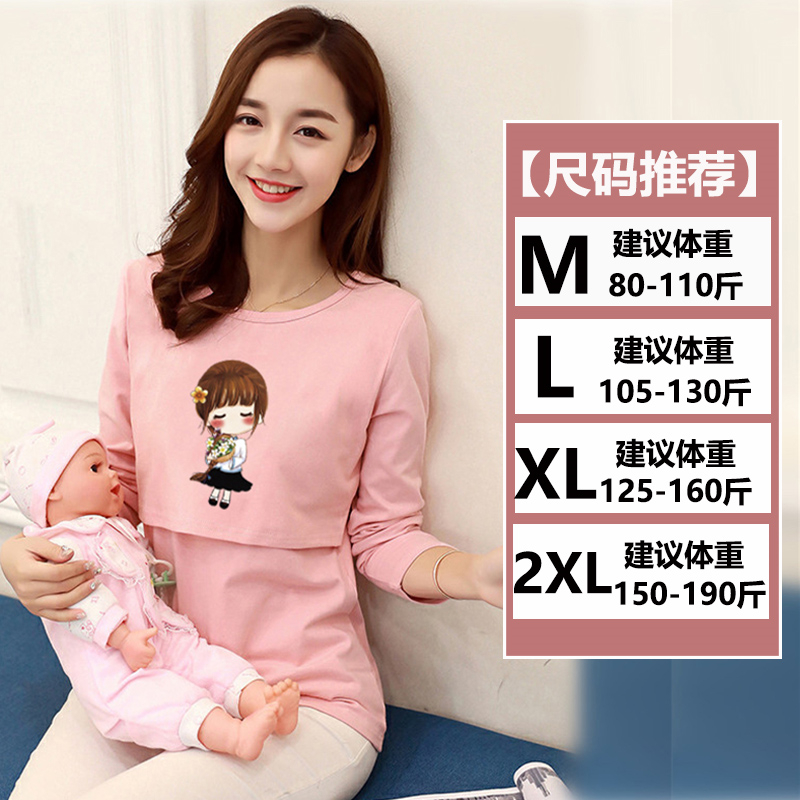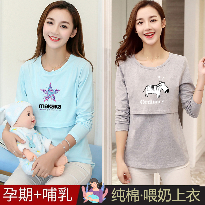 秋季 打底衫 上衣长袖 产后纯棉产妇大码 喂奶衣 薄款 哺乳衣外出辣妈款