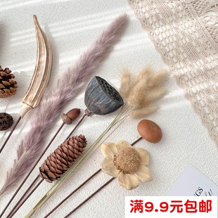 diy材料干花花束莲蓬芦苇棉花松果真花风干天然客厅装 饰插花摆设