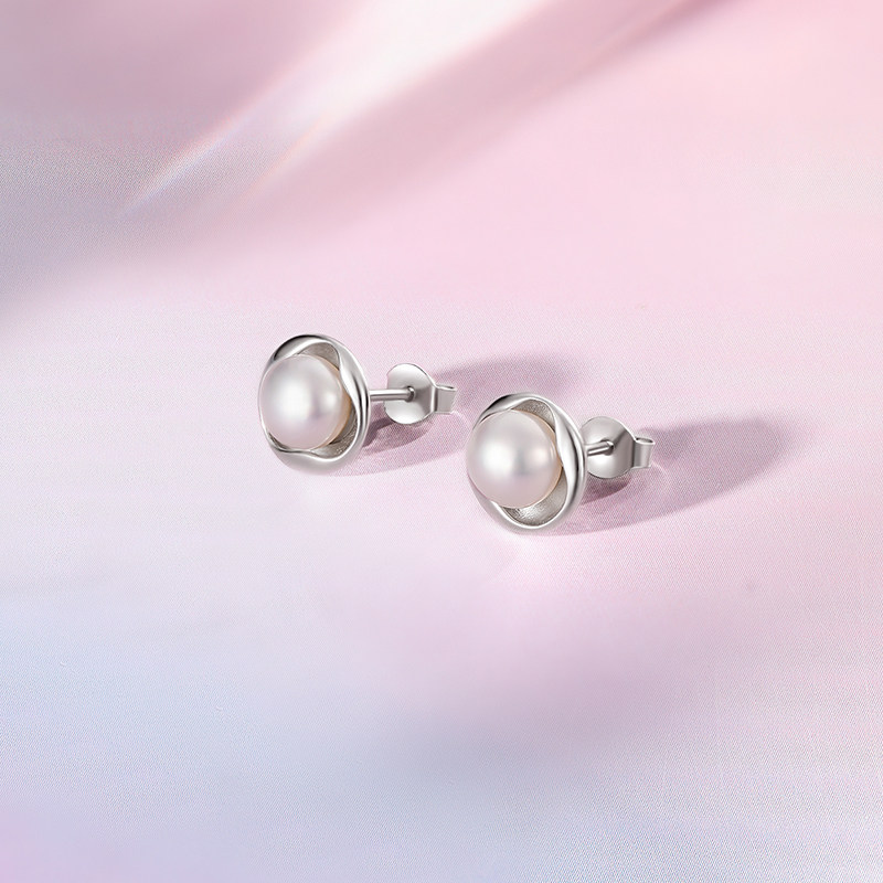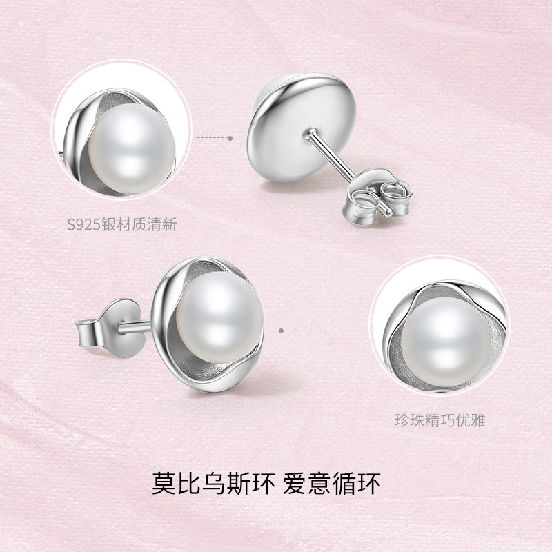 周六福S925银珍珠耳饰女流光温柔法式 优雅送女友新年礼物