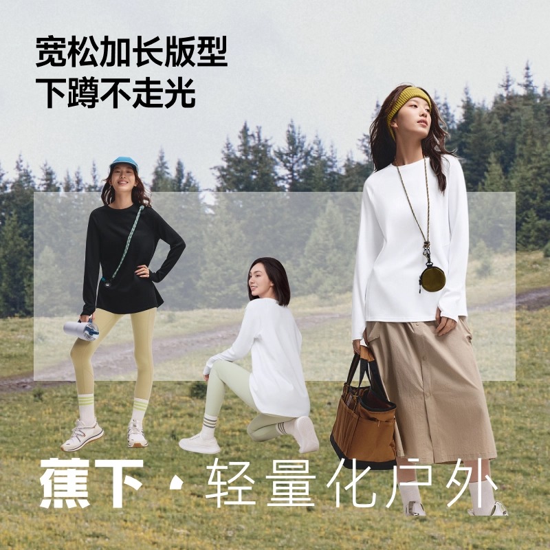 上衣宽松白色2025秋冬新品 蕉下运动长袖 纯棉T恤女遮屁股打底衫