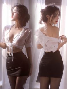女夏 ol职业白衬衫 御姐风秘书性感纯欲夏天上衣衬衣套装 jk制服修身