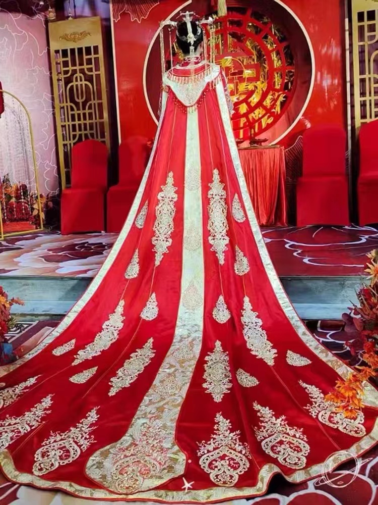 包邮 出租披风新品 重工刺绣 凤冠霞帔民族风新娘经典 秀禾长拖尾 中式