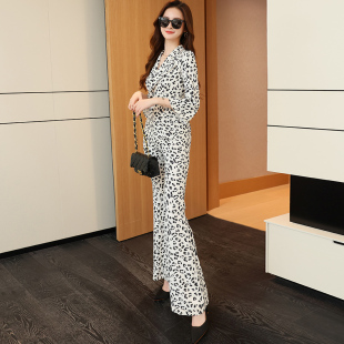 阔腿长裤 时髦豹纹气质连体裤 连身裤 显瘦性感印花微喇叭裤 早秋新款