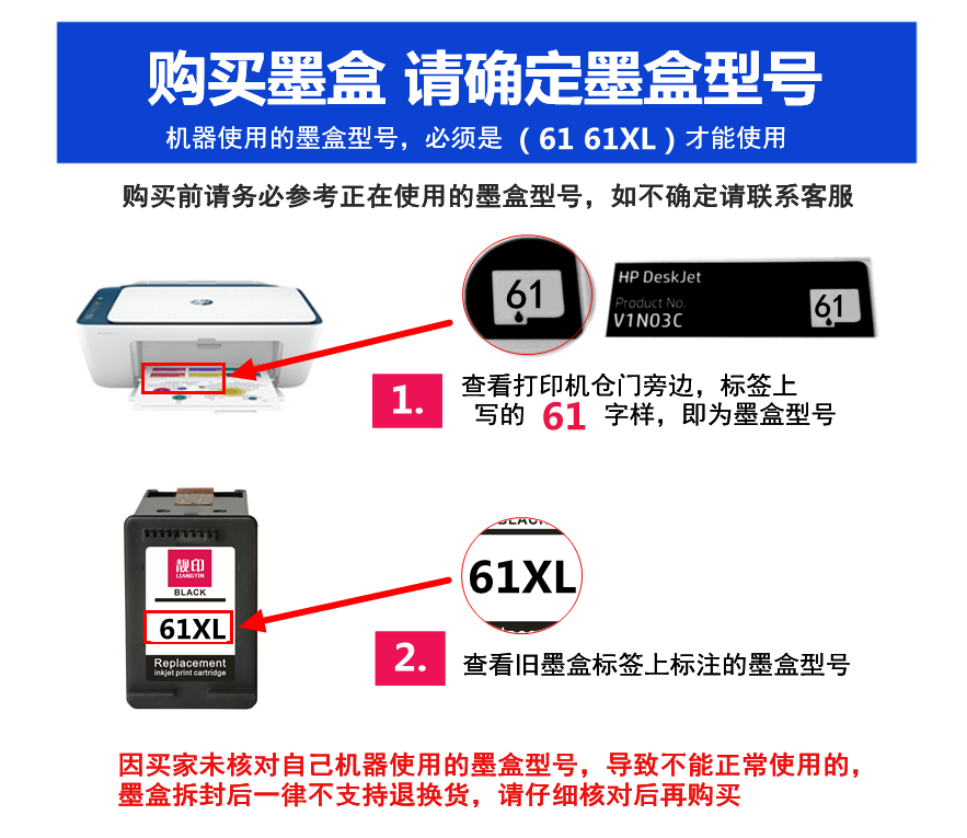 1011 2510 61XL墨盒 2620 1010 1000 3510 2540 4630 打印机 1510 1050 4500 靓印适用惠普61 墨盒 1511