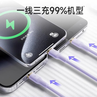 铂信适用数据线三合一充电器线液态100W超级快充三头苹果华为vivo安卓一拖三Typec手机iPhone多头多功能车载3