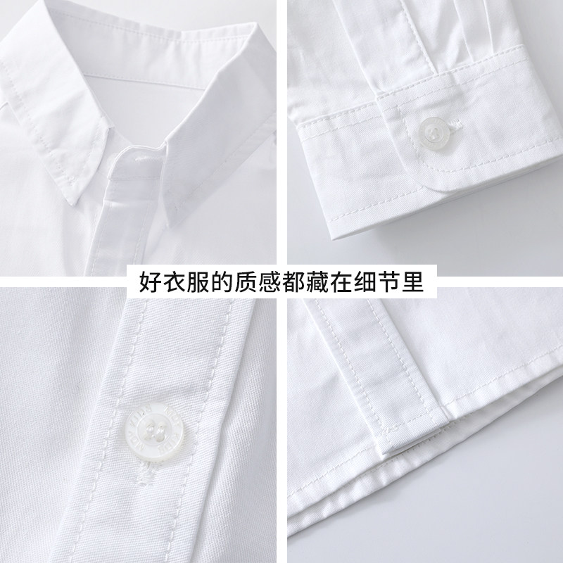 男童校服小学生白衬衣男孩中大童加绒演出 春秋款 儿童长袖 白色衬衫