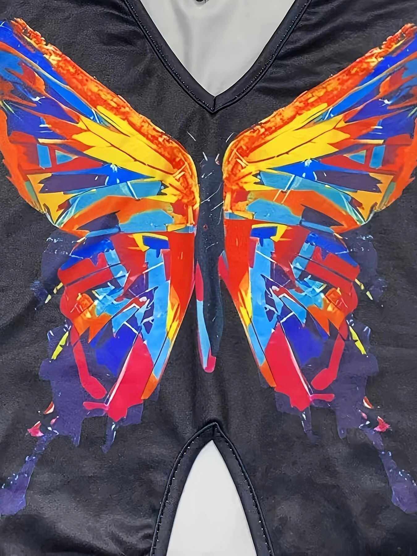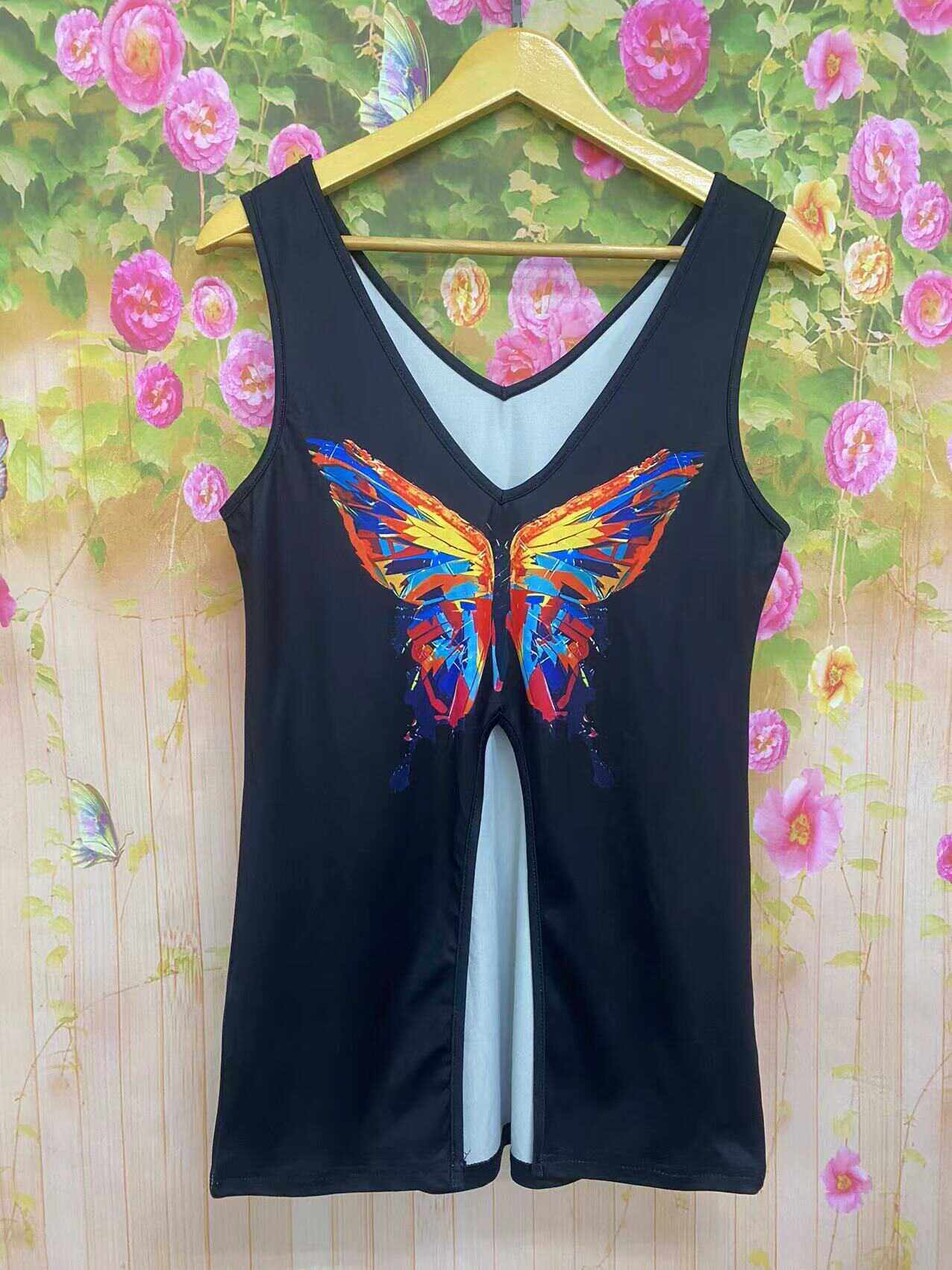 print casual sleeveless 2024 shirt butterfly top vest