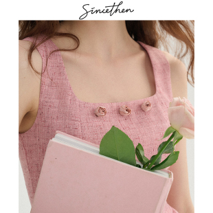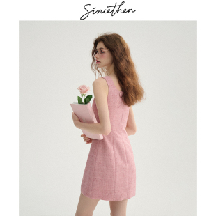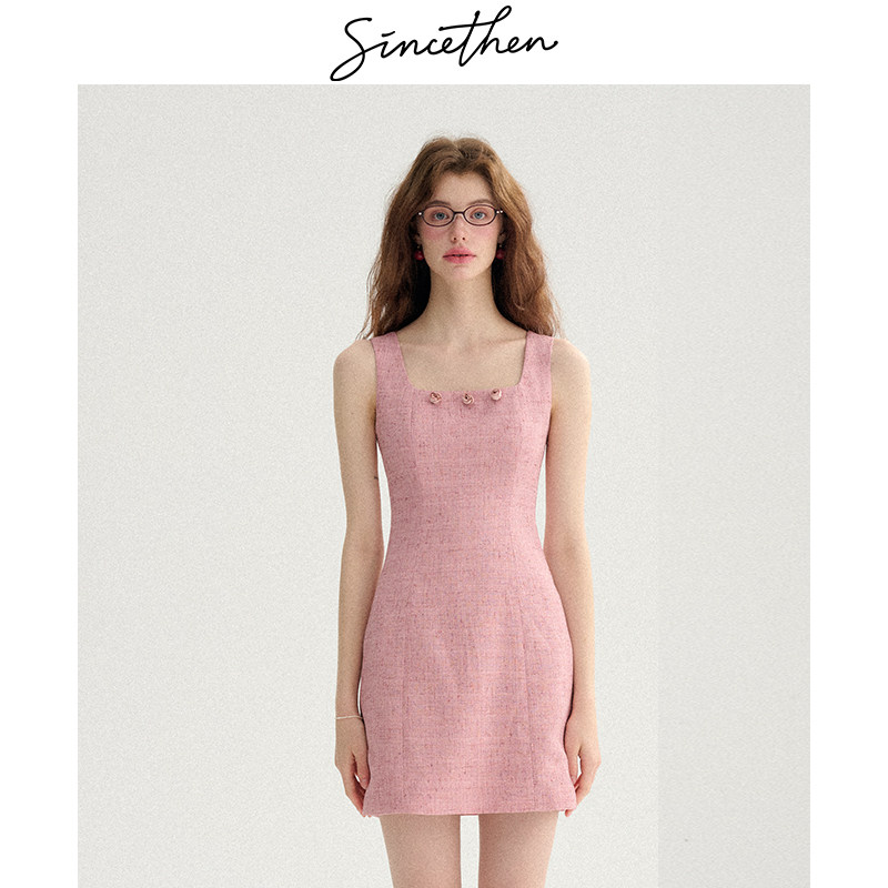 sincethen 粉色吊带裙轻礼服裙子高级感千金穿搭小香风连衣裙女秋