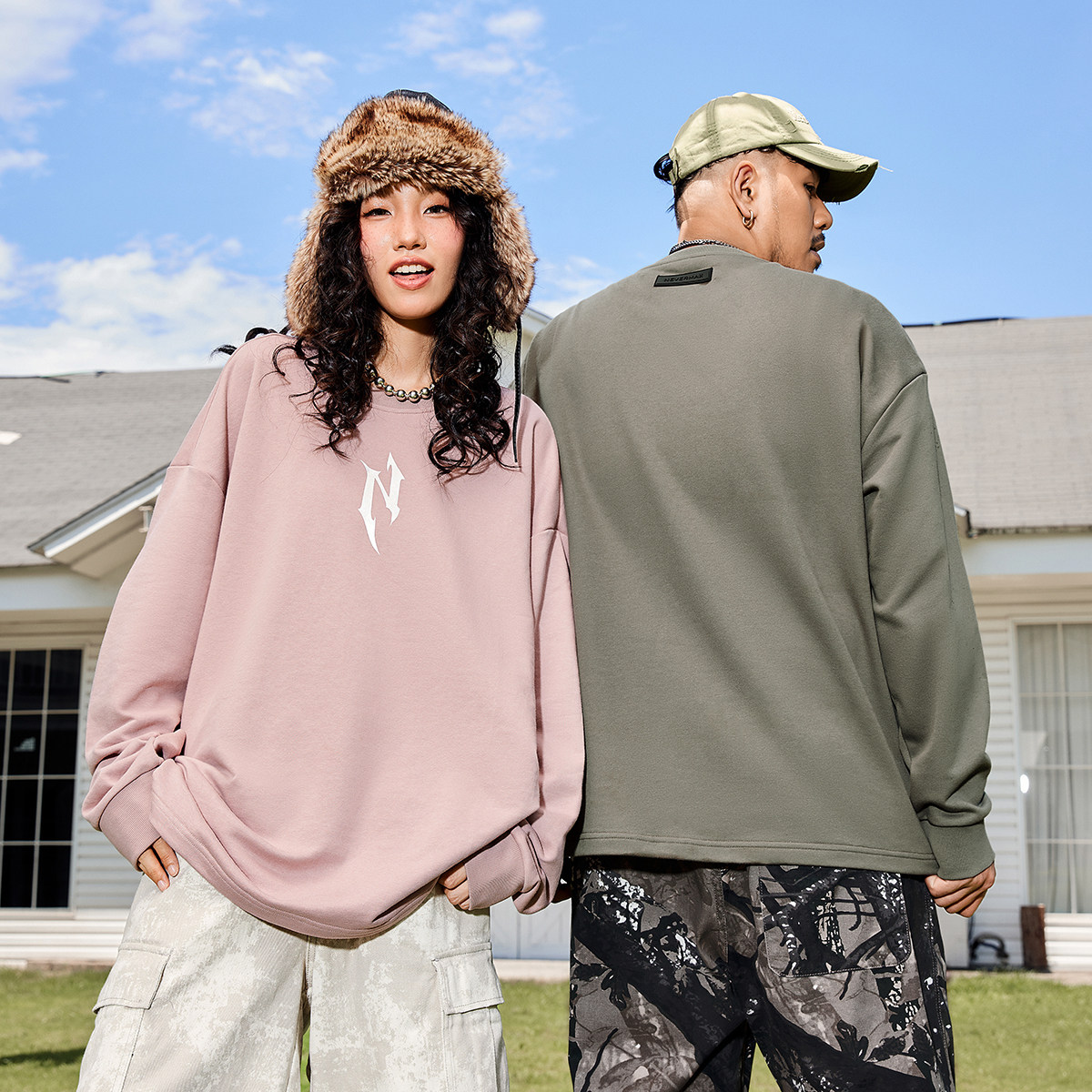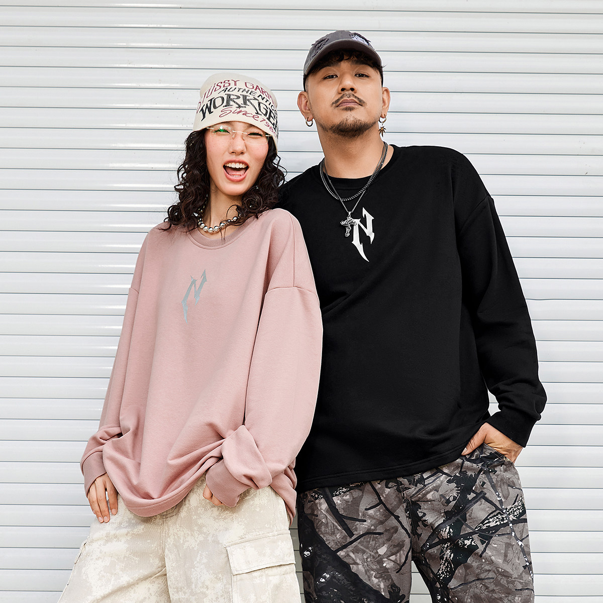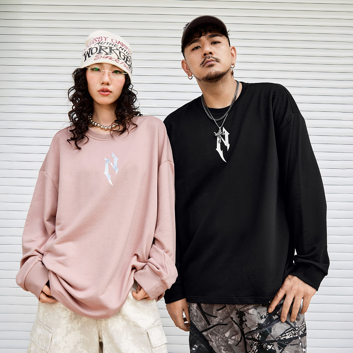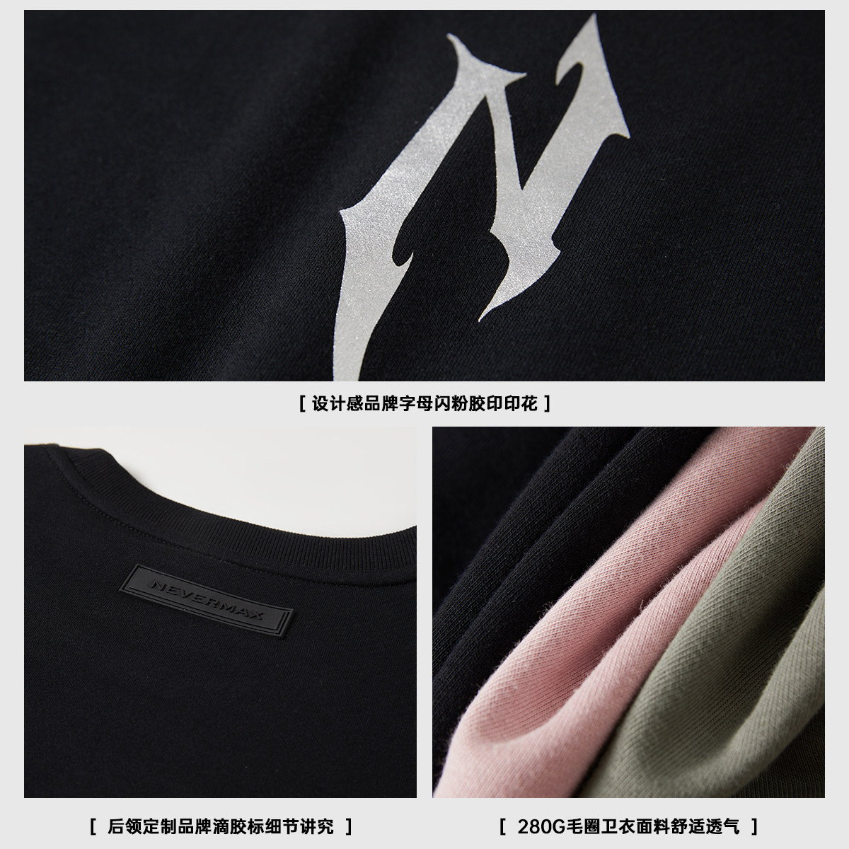 闪粉胶印简约套头卫衣多色宽松情侣装 秋新品 潮牌男装 NMAX大码