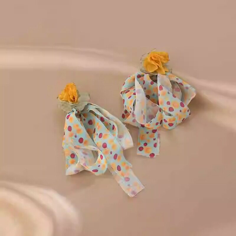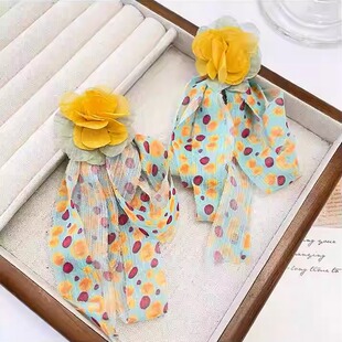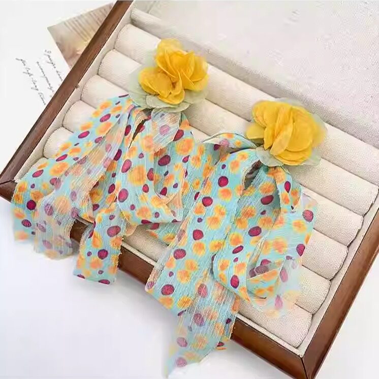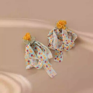 张婧仪同款 夸张气质女神范耳饰度假风耳钉 超仙雪纺耳环2024年新款