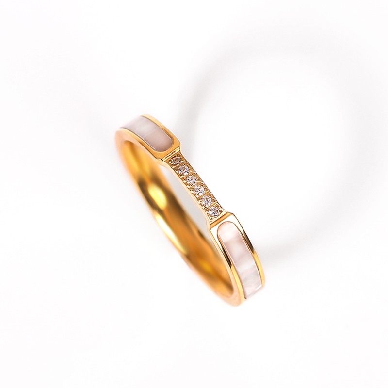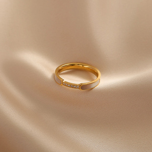 奥特莱斯专柜清仓撤柜捡漏18K金贝母轻奢镶钻戒指outlets女配饰