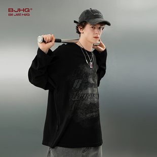 废土风长袖 打底衫 t恤男春季 情侣内搭卫衣男士 女 美式 BJHG不计后果