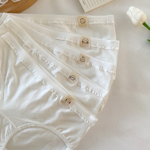 5条白色内裤 可爱日系简约高中生全白纯白 女纯棉裆中腰少女韩版