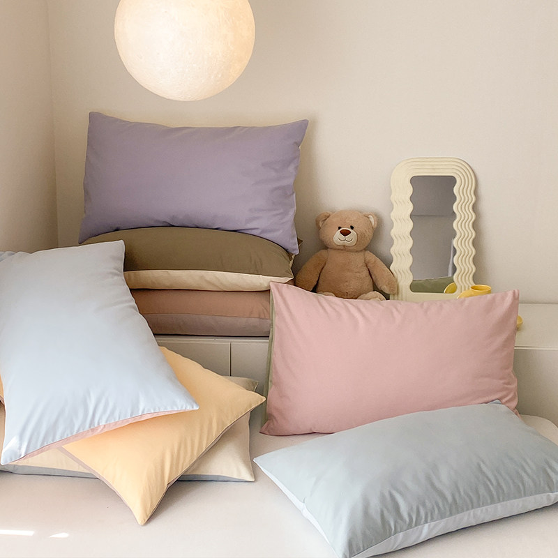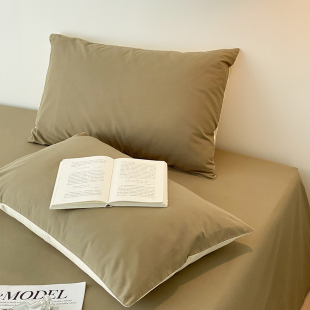 在耳边简约双拼枕套纯棉长绒棉高密磨毛单人枕套48 74单只枕头套