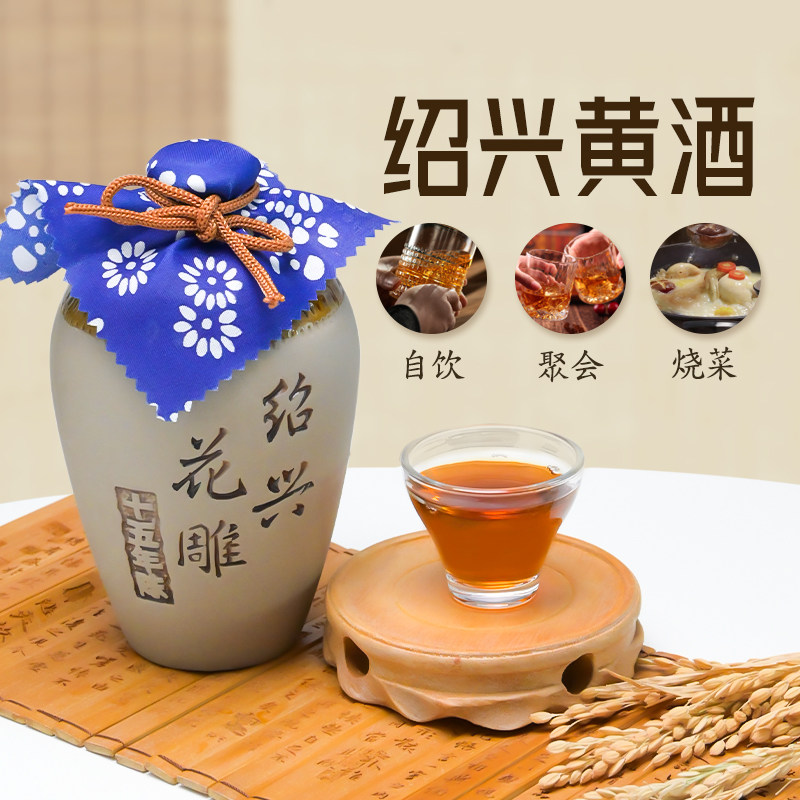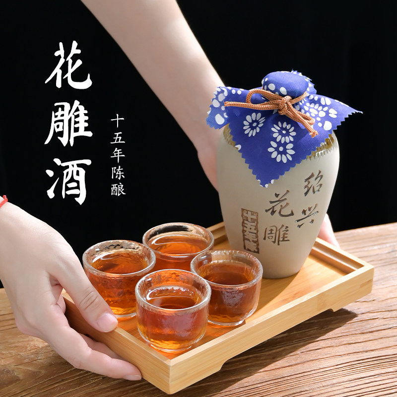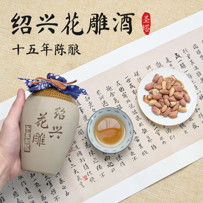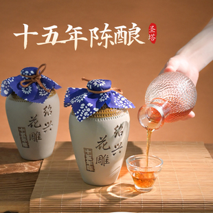 圣塔正宗绍兴黄酒十五年陈酿500ml坛礼盒装 糯米花雕半干型加饭酒