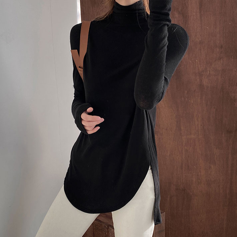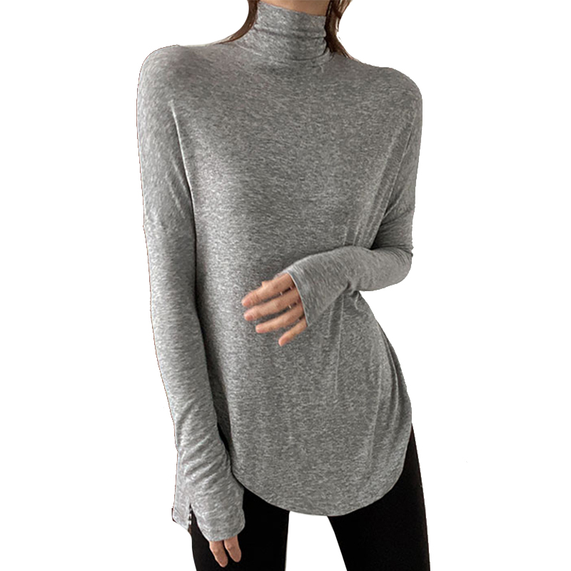 大码 欧货小衫 黑色上衣宽松遮胯T恤 女内搭中长款 莫代尔高领打底衫