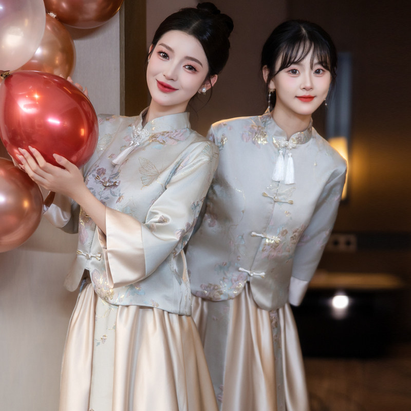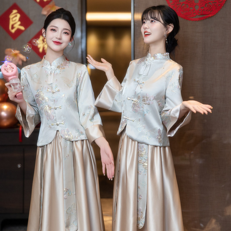 显瘦大码 闺蜜装 姐妹团礼服女 伴娘服秋冬中国风姐妹裙2025新款 中式
