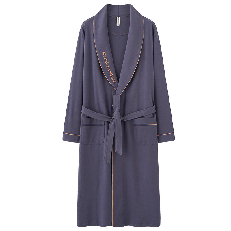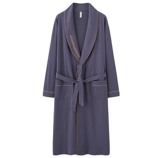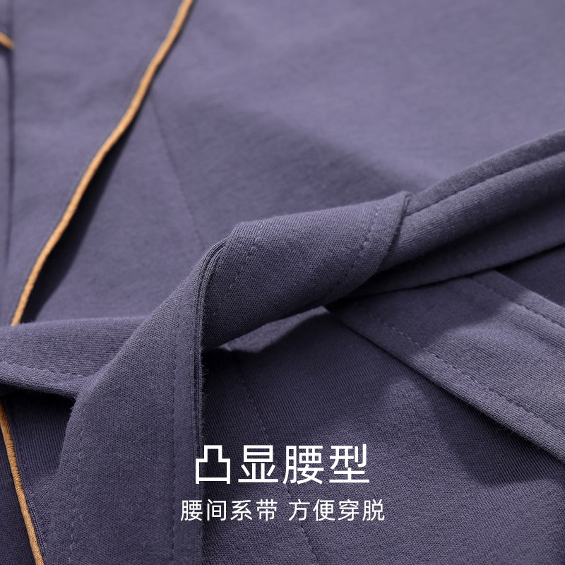 过膝睡袍裸睡神器全棉浴袍 纯棉睡裙秋冬宽松一体睡衣长款 男士 长袖