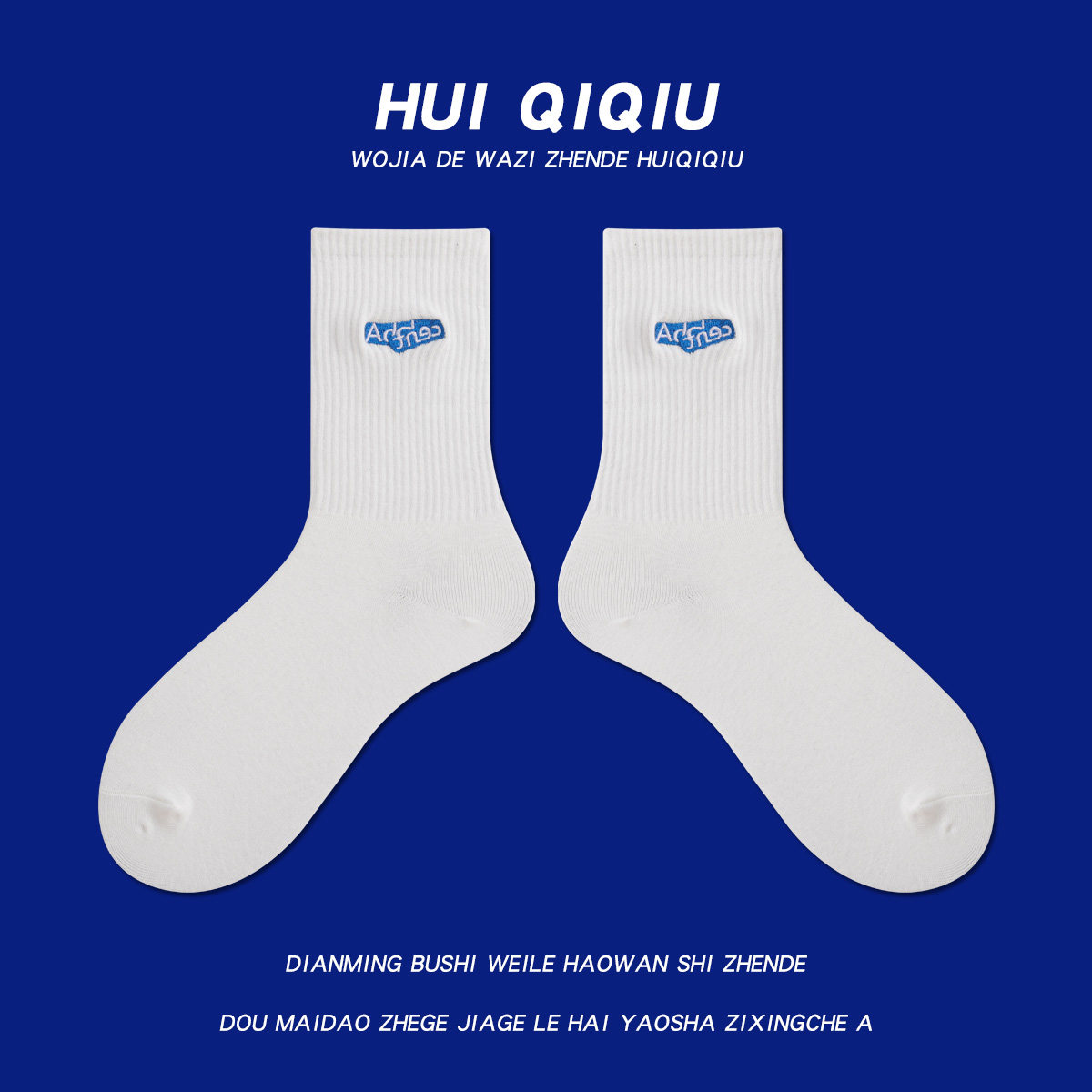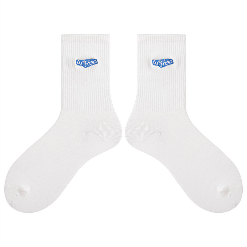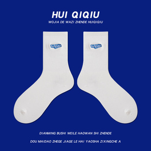 会起球 小众潮袜白色刺绣袜ins潮牌男女情侣中筒袜 袜子