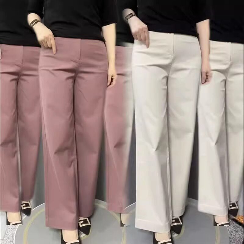 直筒拖地裤 春秋新款 宽松遮肉百搭妈妈裤 高腰显瘦休闲裤 阔腿老爹裤