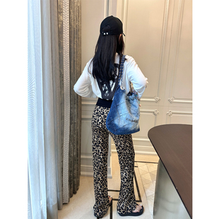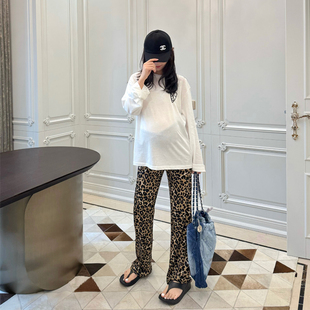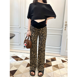 显瘦百搭拖地直筒裤 LeoMami孕妇裤 豹纹休闲裤 醋酸针织时尚 春秋款