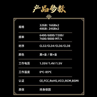 7200 6800 8000频 32GB内存条 紫光国芯UniWhen墨云藏镜煌DDR5台式