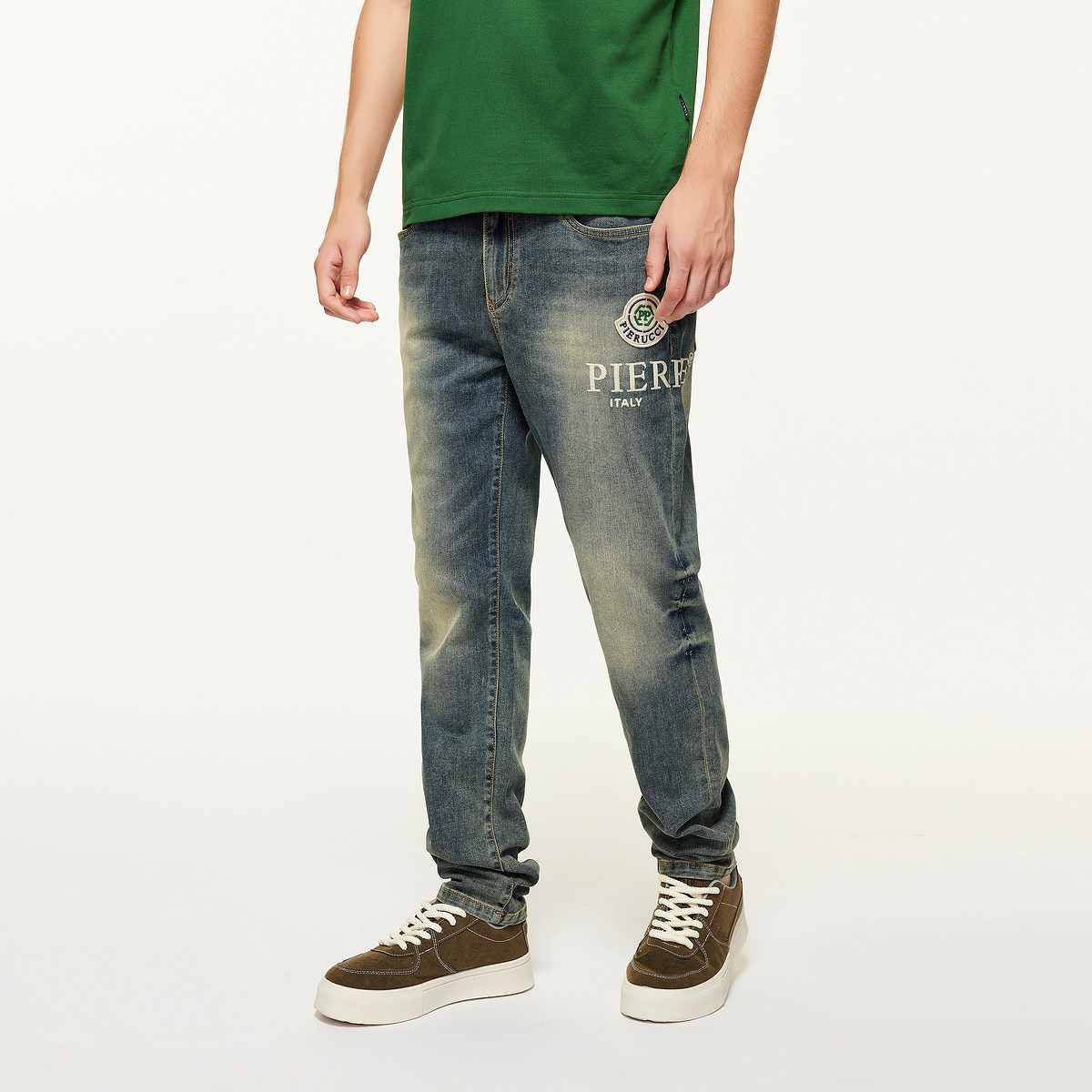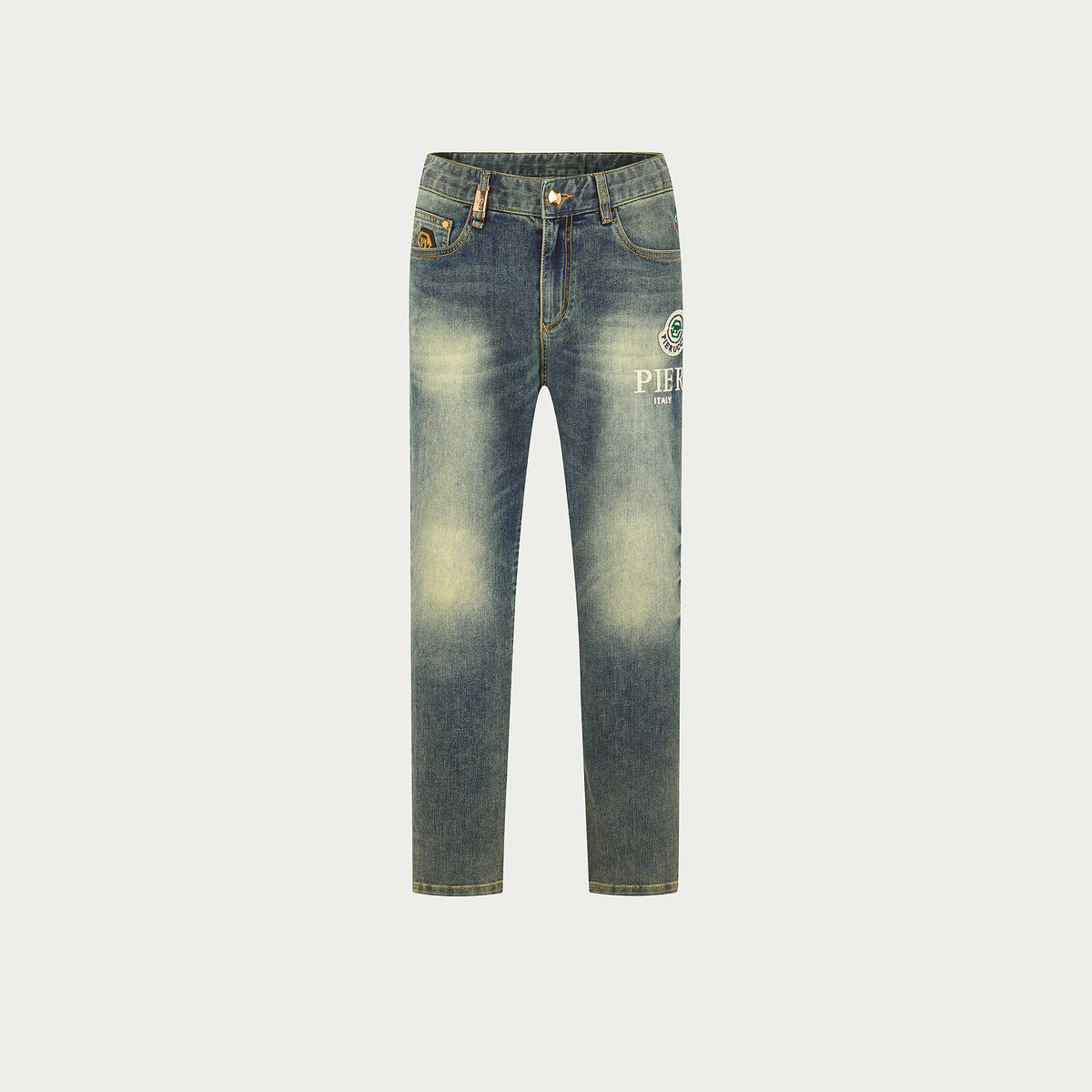 直筒复古字母印花水洗牛仔裤 PP意大利轻奢男装 修身 新款 潮 2025夏季