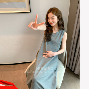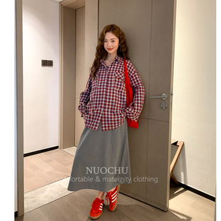 灰色背心连衣裙纯棉弹性显瘦长裙 秋装 诺初孕妇装 显白格子衬衫
