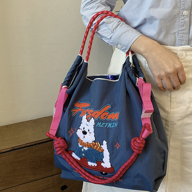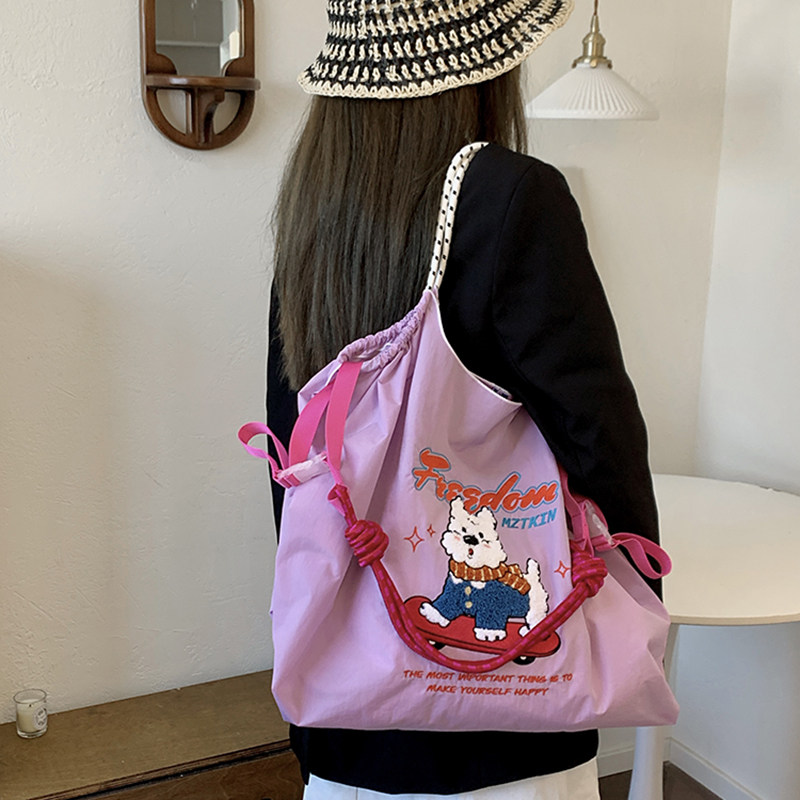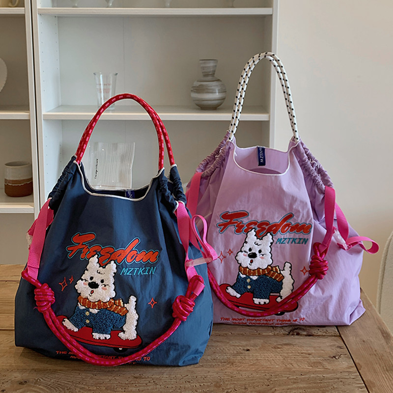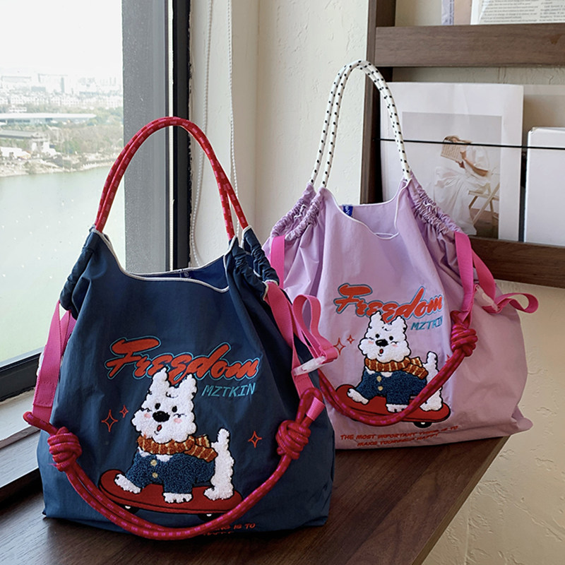 日系夏季 滑板西高地刺绣购物袋卡通可爱帆布包尼龙单肩斜挎包 新款