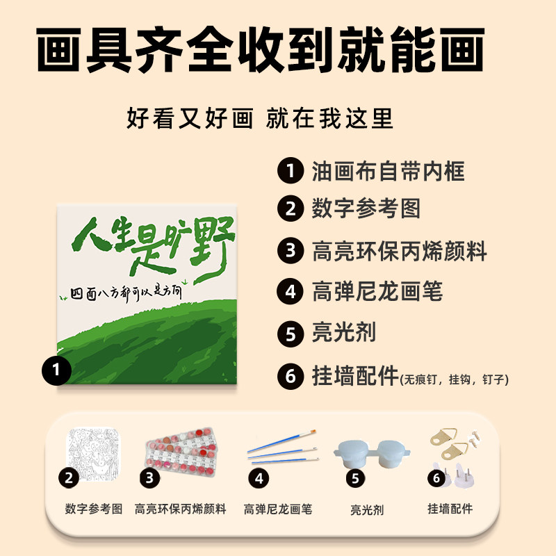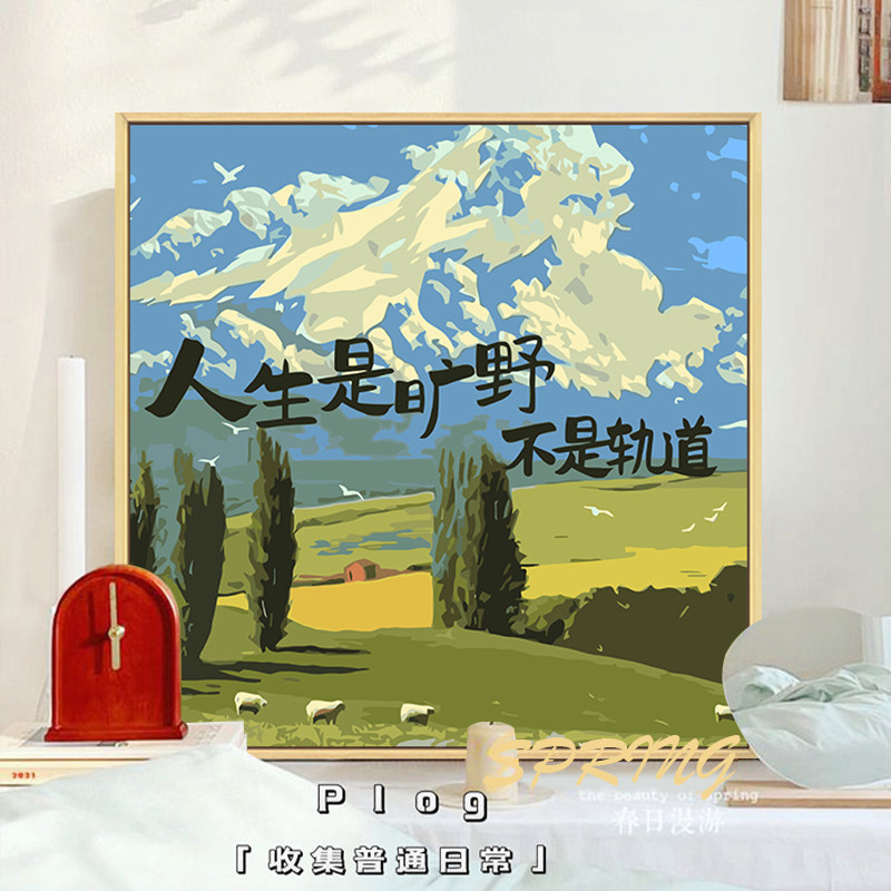 人生是旷野 饰画 数字油画diy填充填色手工绘治愈系文字丙烯油彩装