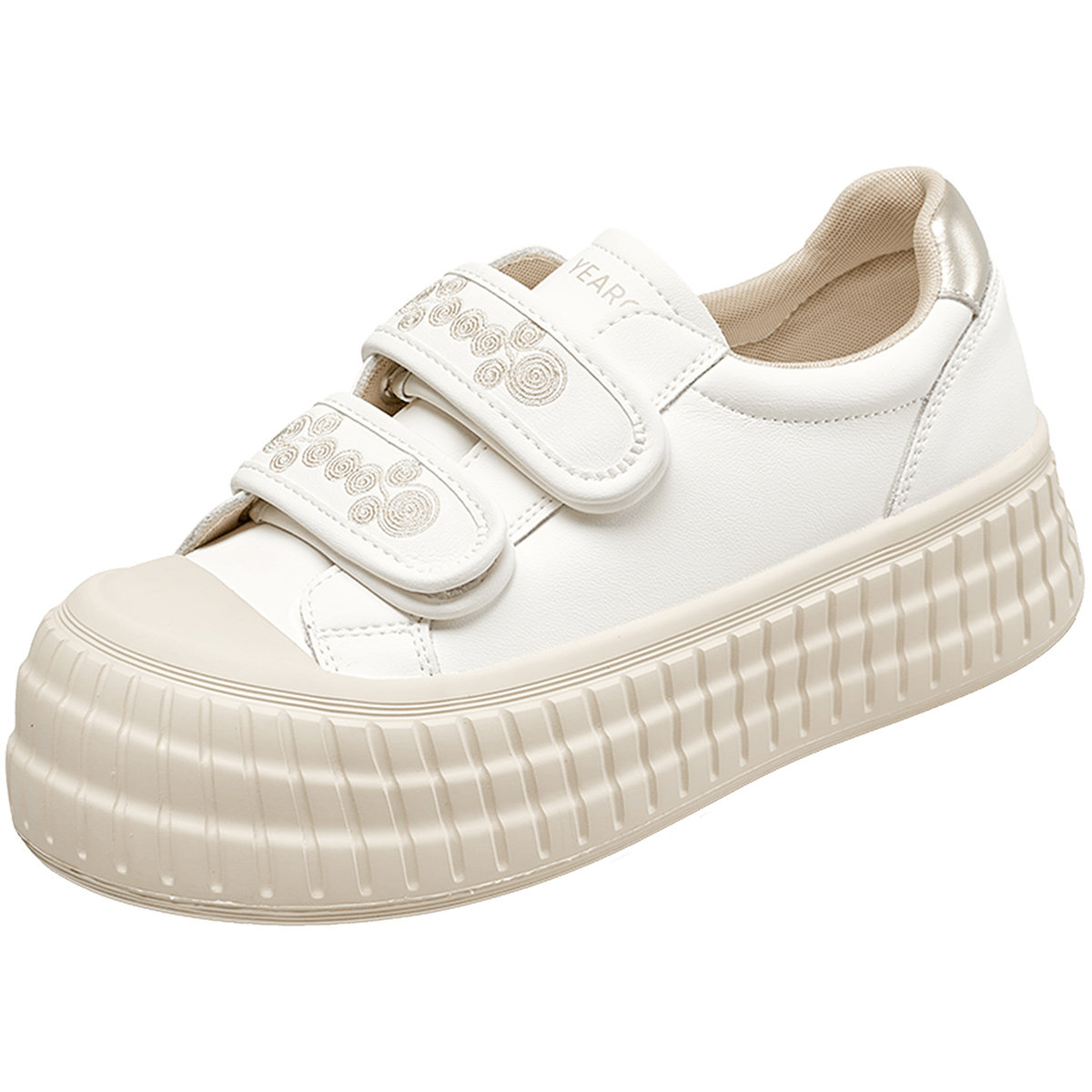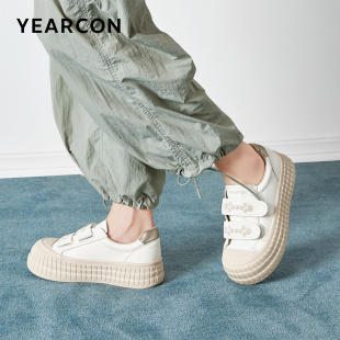 饼干小白鞋 意尔康女鞋 女士休闲平底单鞋 厚底板鞋 低帮英伦风 春秋季