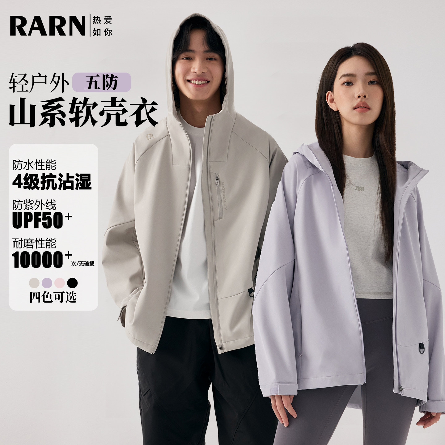 RARN户外轻量化防风软壳外套女春装 休闲冲锋衣运动登山夹克男 新款