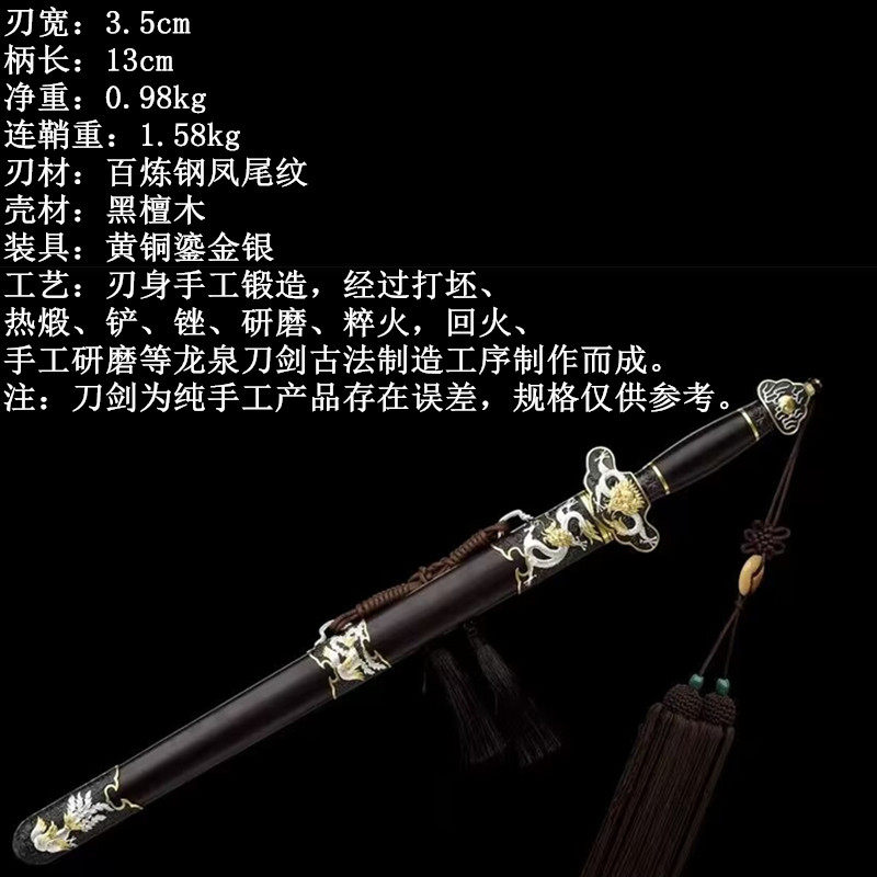 纯手工制作精品短剑龙凤清剑凤尾纹硬剑真剑龙泉市高端宝剑未开刃
