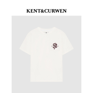 KENT&CURWEN T恤 肯迪文春夏玫瑰刺绣女士纯棉重磅学院风短袖