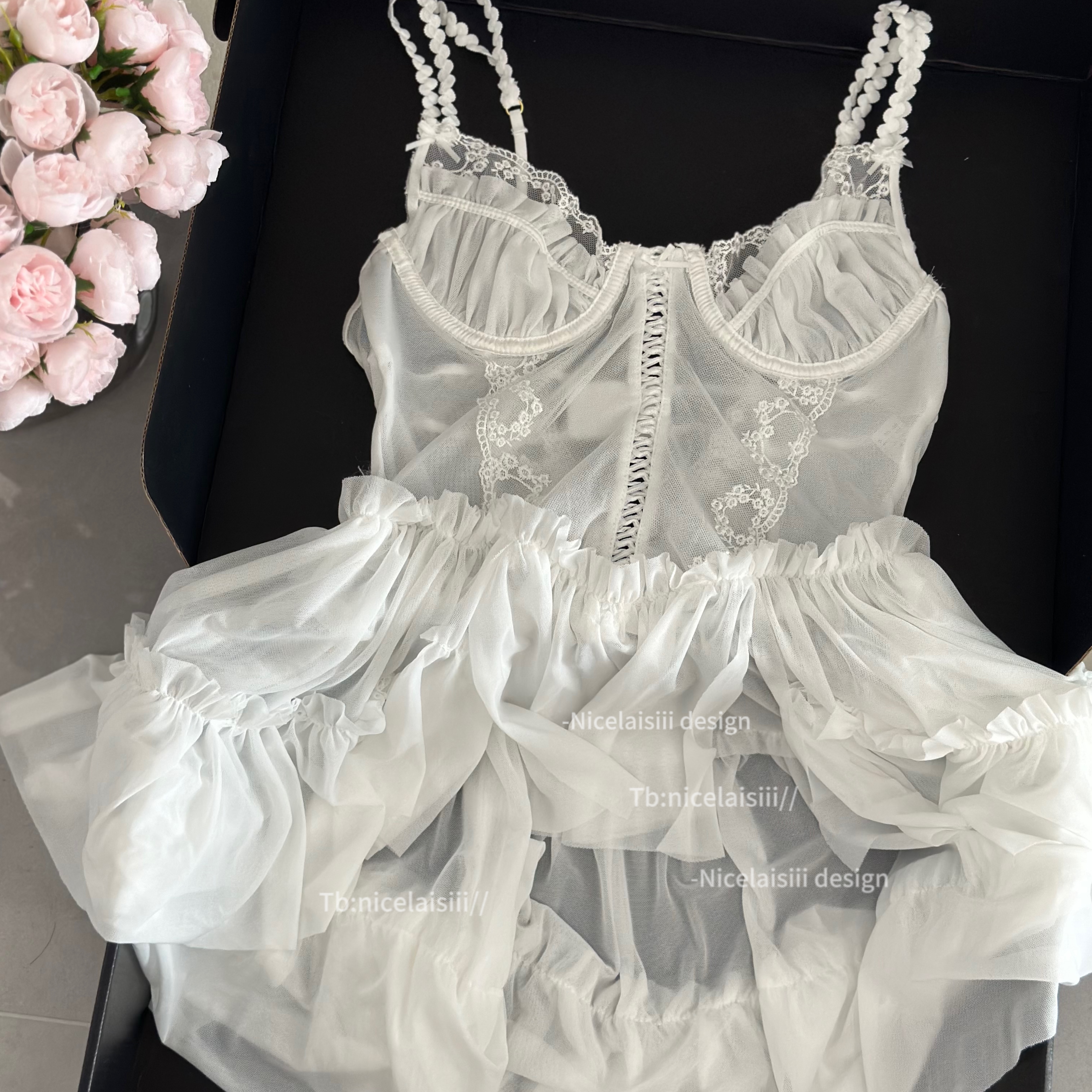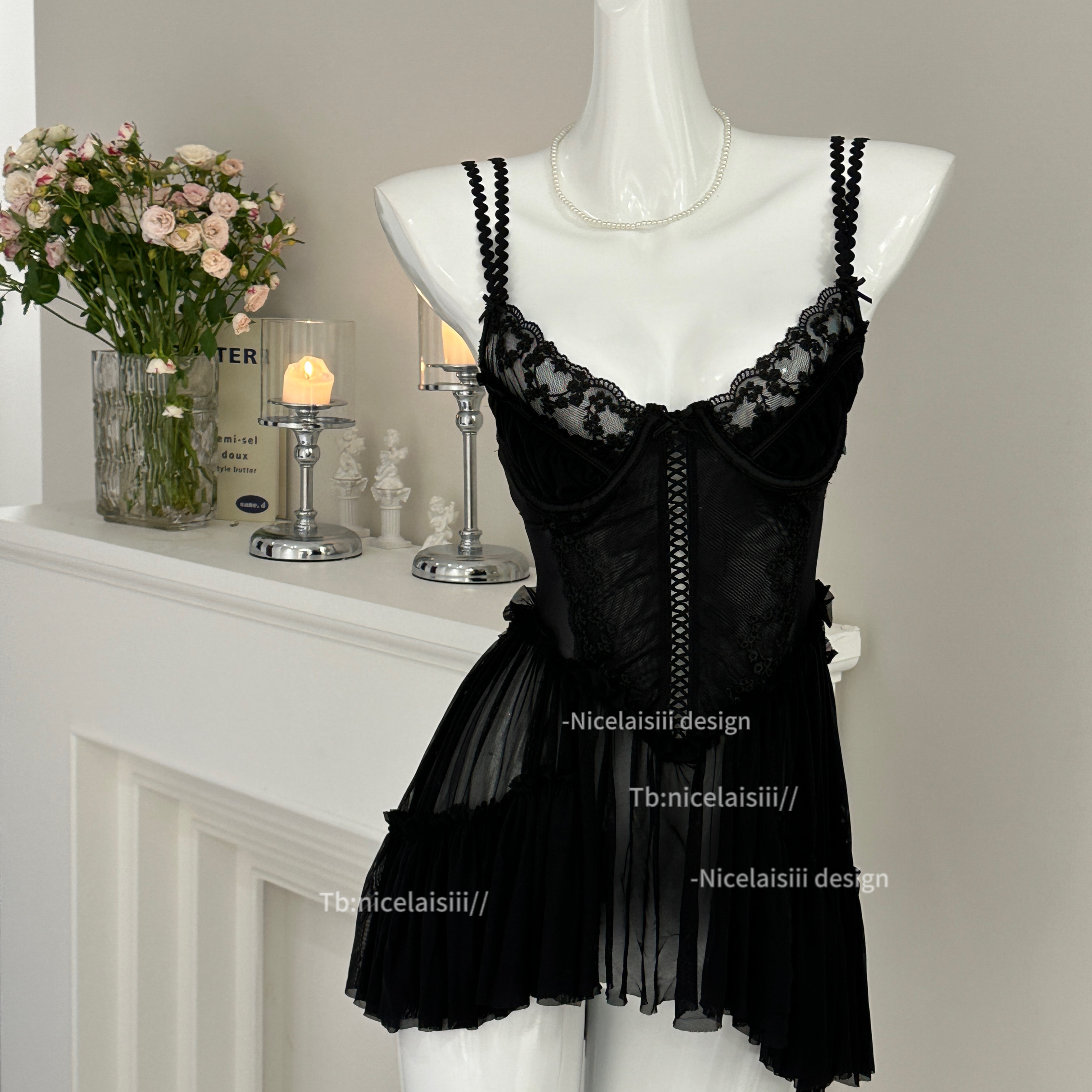 Nicelaisiii雾里看花 蕾丝纯欲风带钢圈吊带裙小胸友好甜美睡裙