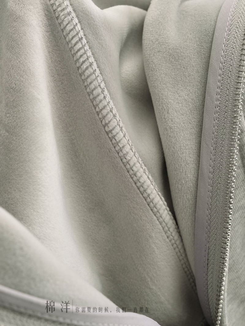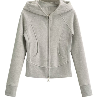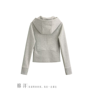 秋冬加绒复古双拉链健身小外套 连帽拼接显瘦卫衣女 棉洋 时髦修身