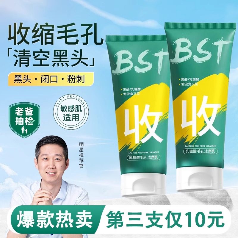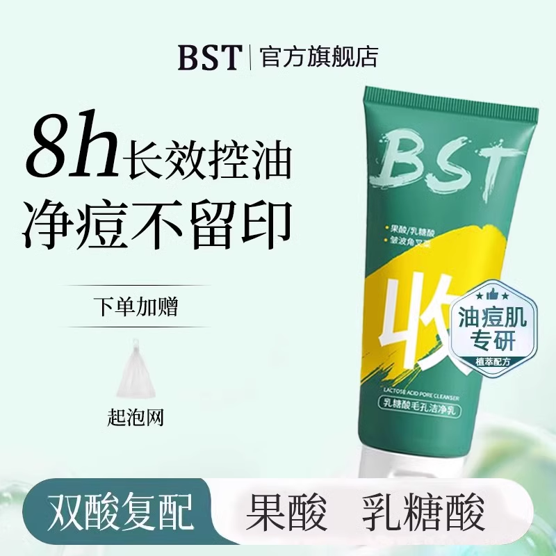 官方正品 BST洗面奶乳糖酸净痘黑头闭口收毛孔碧素堂官方防伪可查