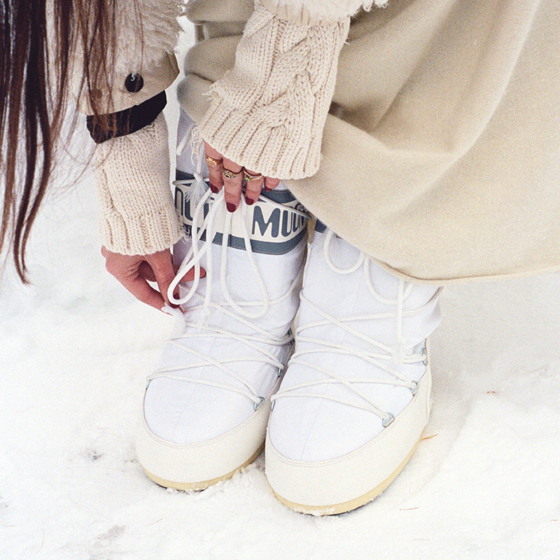 男女同款 款 不分左右白色ICON尼龙高筒雪地靴 Boot经典 Moon