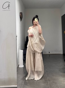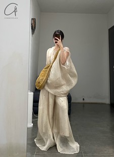 小个子百搭休闲裤 子女高腰垂坠感窄版 米白色加绒加厚阔腿裤 秋冬季